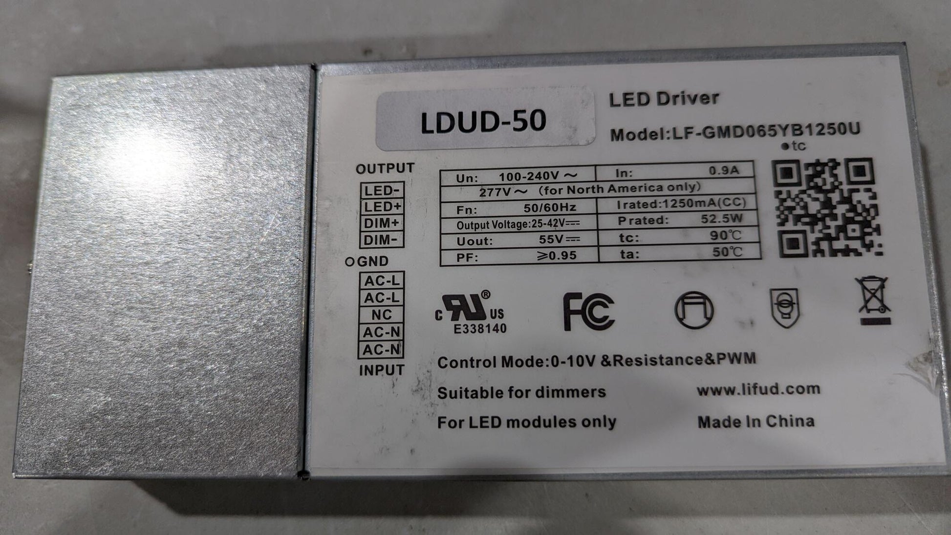 LED Driver Lifud 100-277VAC 25-42VDC 52W 1.25A Dimmable 1-10VDC