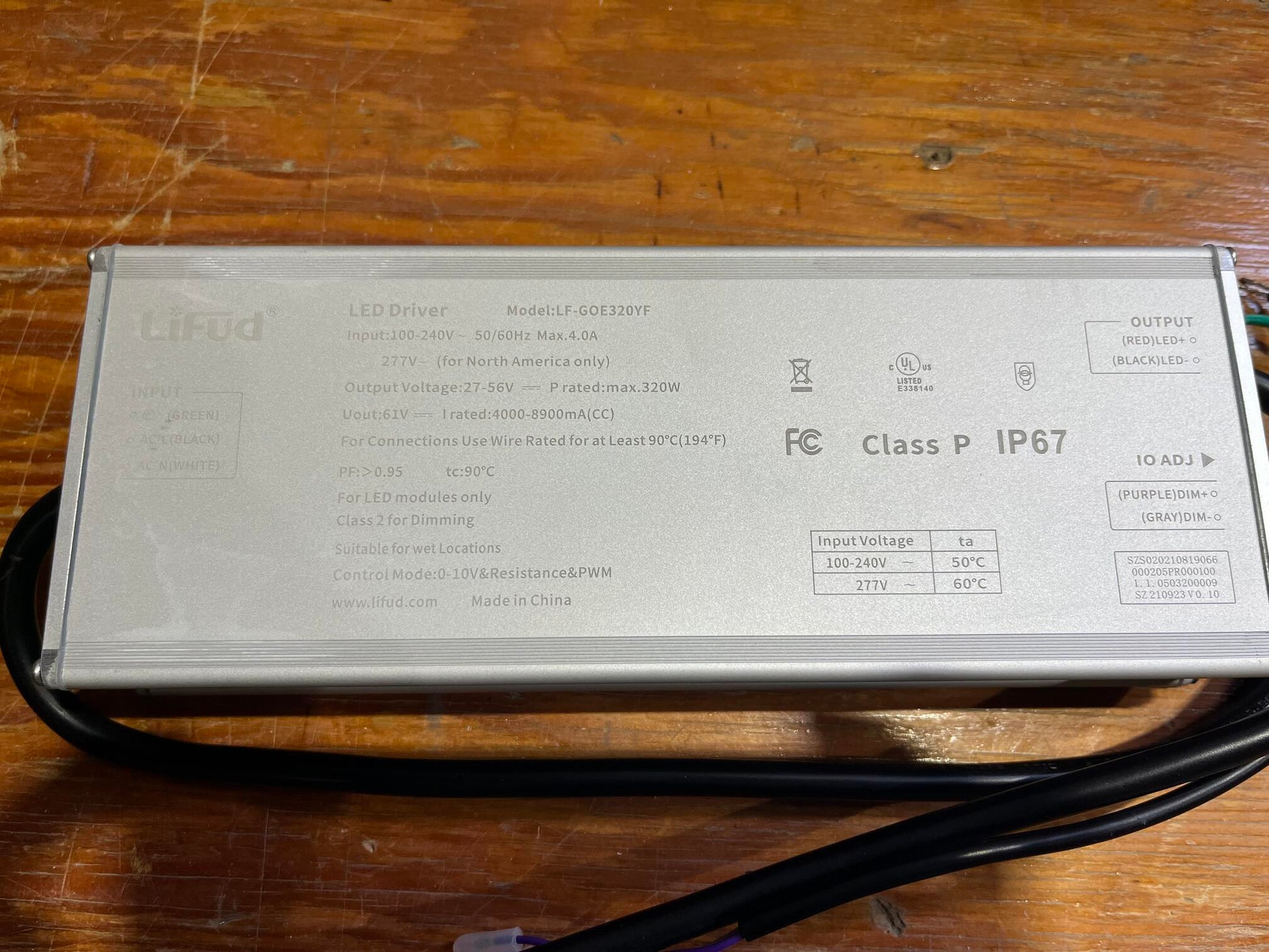 LED Driver Lifud 100-277VAC 27-56VDC 320W 8.90A Dim. 0-10VDC IP67